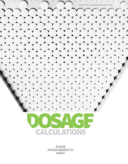Dosage Calculations, is the best-selling Dosage Calculation text in the Canadian market. This has been designed to help students or professionals who feel uncomfortable with mathematics and want to improve their ability to perform accurate drug dosage calculations. It features a three-step approach to basic and advanced Formula Method calculations that nursing and other health care professionals prefer, along with a reader-friendly writing style and handy “”work text”” format.